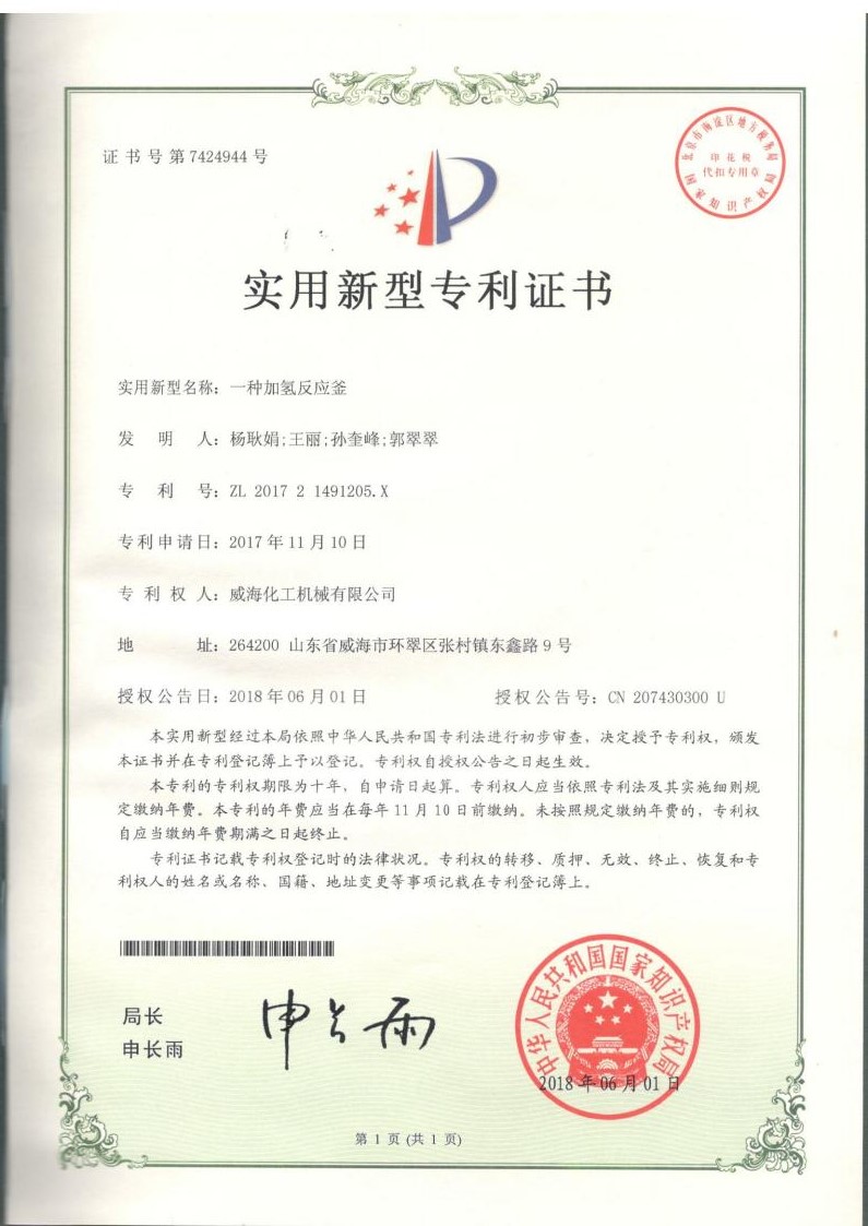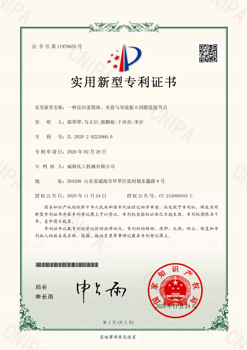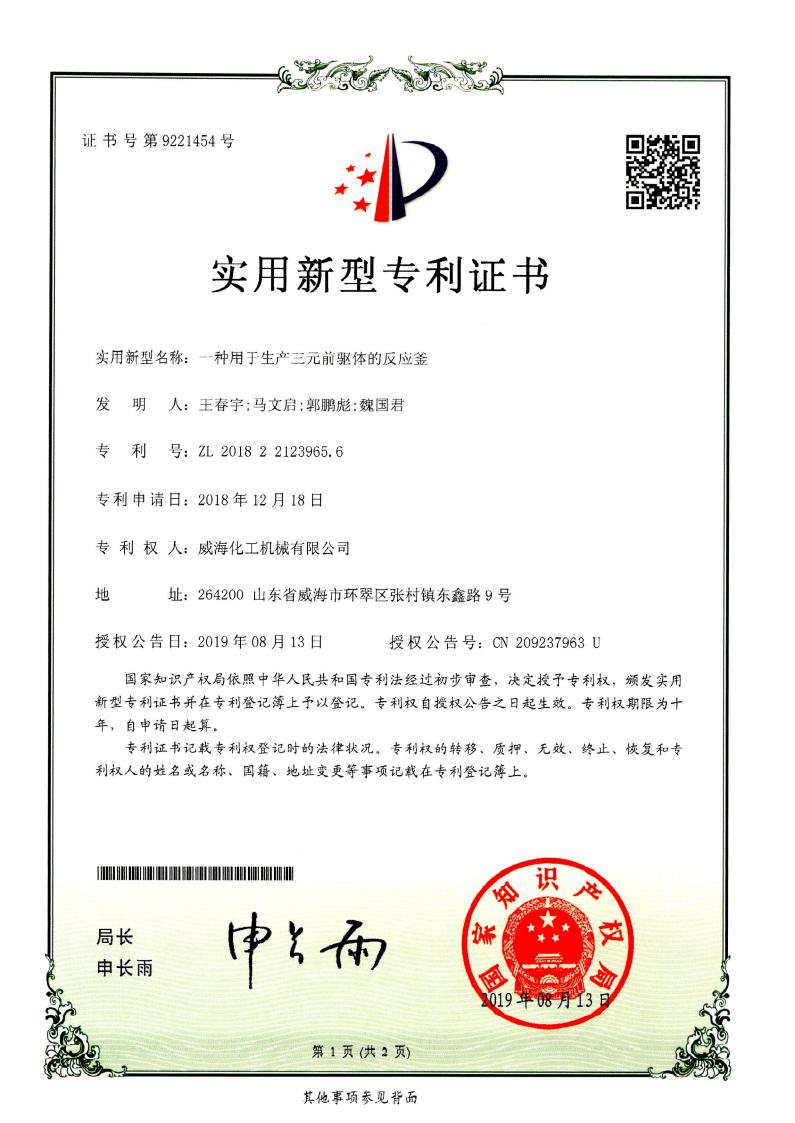 截止2024年擁有高壓反應(yīng)釜領(lǐng)域授權(quán)專利共95項,其中發(fā)明專利19項、實用新型專利69項、外觀專利7項,并持續(xù)在高壓反應(yīng)釜領(lǐng)域開展關(guān)鍵核心技術(shù)攻關(guān)