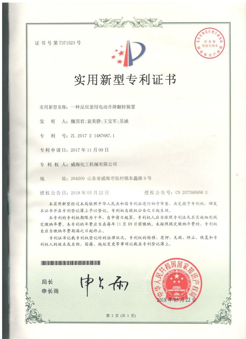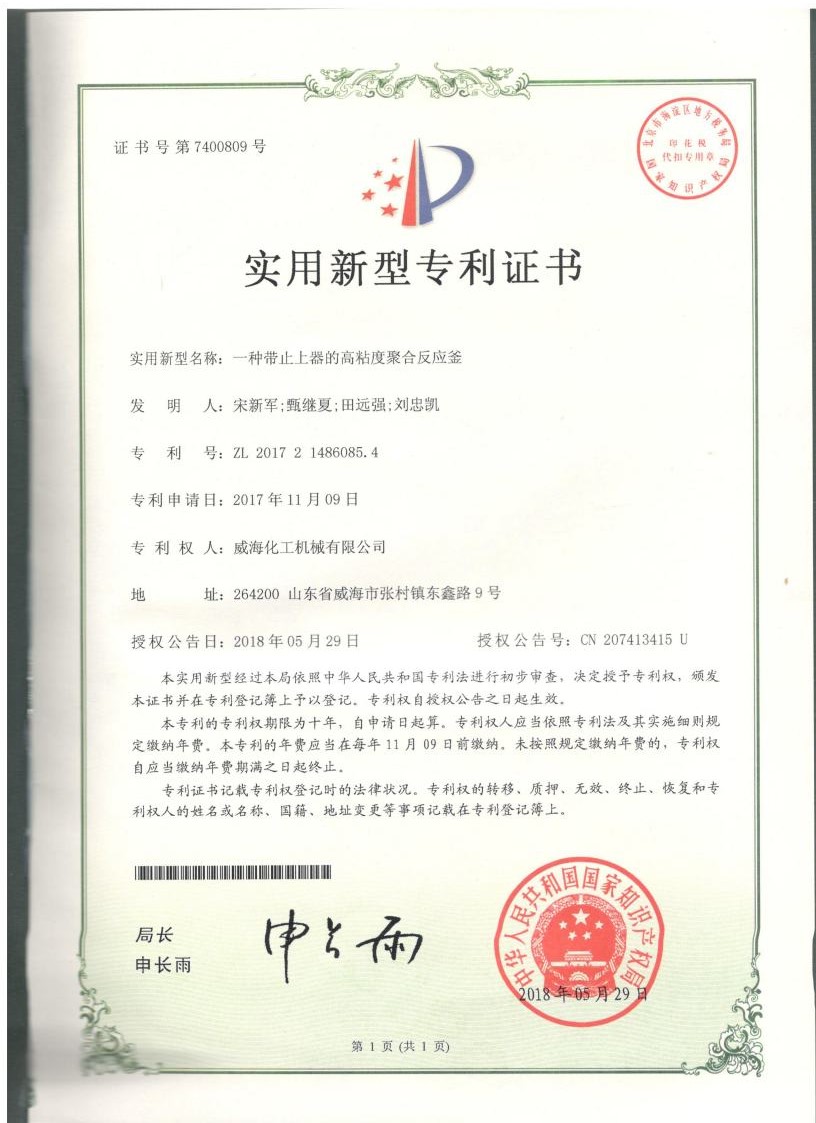實用新型專利一種反應(yīng)釜用…
