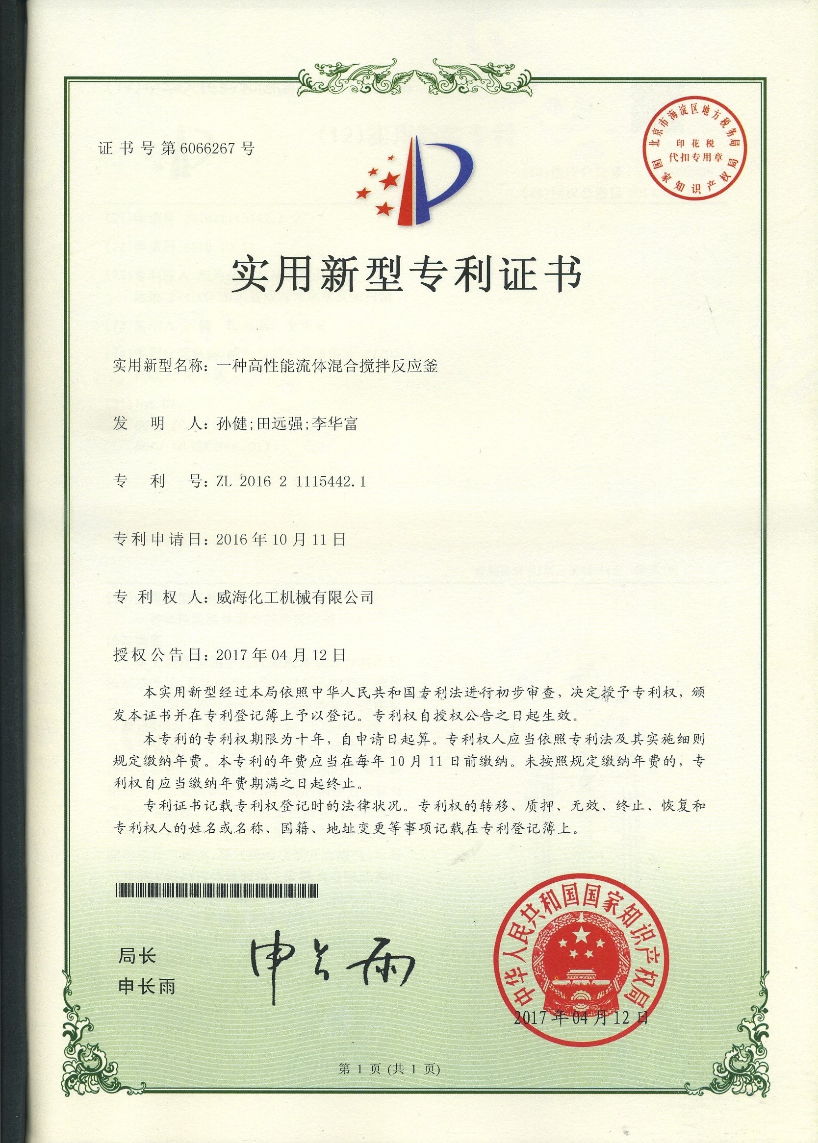 專利證書