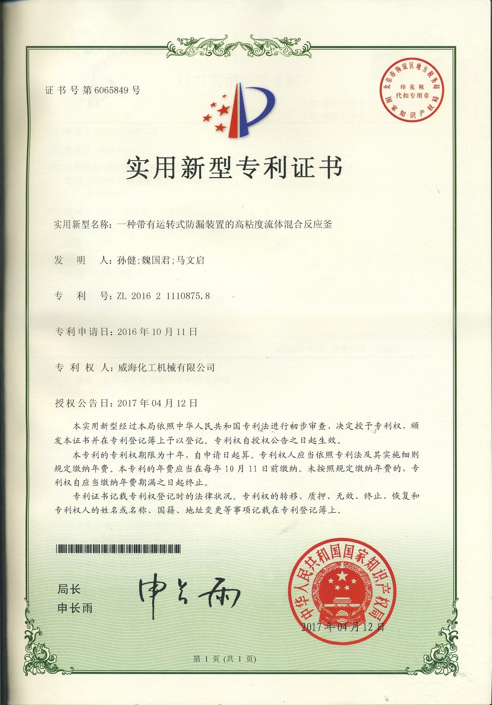 公司建有磁力驅(qū)動測試試驗室、攪拌模擬試驗室、反應(yīng)釜流體混合攪拌重點實驗室等,科研力量雄厚。截至2024年,公司共承擔(dān)近280項自主/合作開發(fā)任務(wù),先后承擔(dān)省級新產(chǎn)品開發(fā)任務(wù)25項,其中23項產(chǎn)品已達到國內(nèi)水平。獲得各類省、市級技術(shù)創(chuàng)新獎30余項;參與起草、修訂標準共8項,GB/T30098-2013實驗室用磁力驅(qū)動反應(yīng)釜標準、HG/T3648-2011磁力驅(qū)動反應(yīng)釜標準、GB/T29254-2012實驗室反應(yīng)釜用控制器標準、NB/T47002.1~47002.4-2019壓力容器用復(fù)合板;已獲得授權(quán)專利95項,其中發(fā)明專利19項,實用新型專利69項,外觀專利7項;擁有專有技術(shù)和核心技術(shù)40余項。